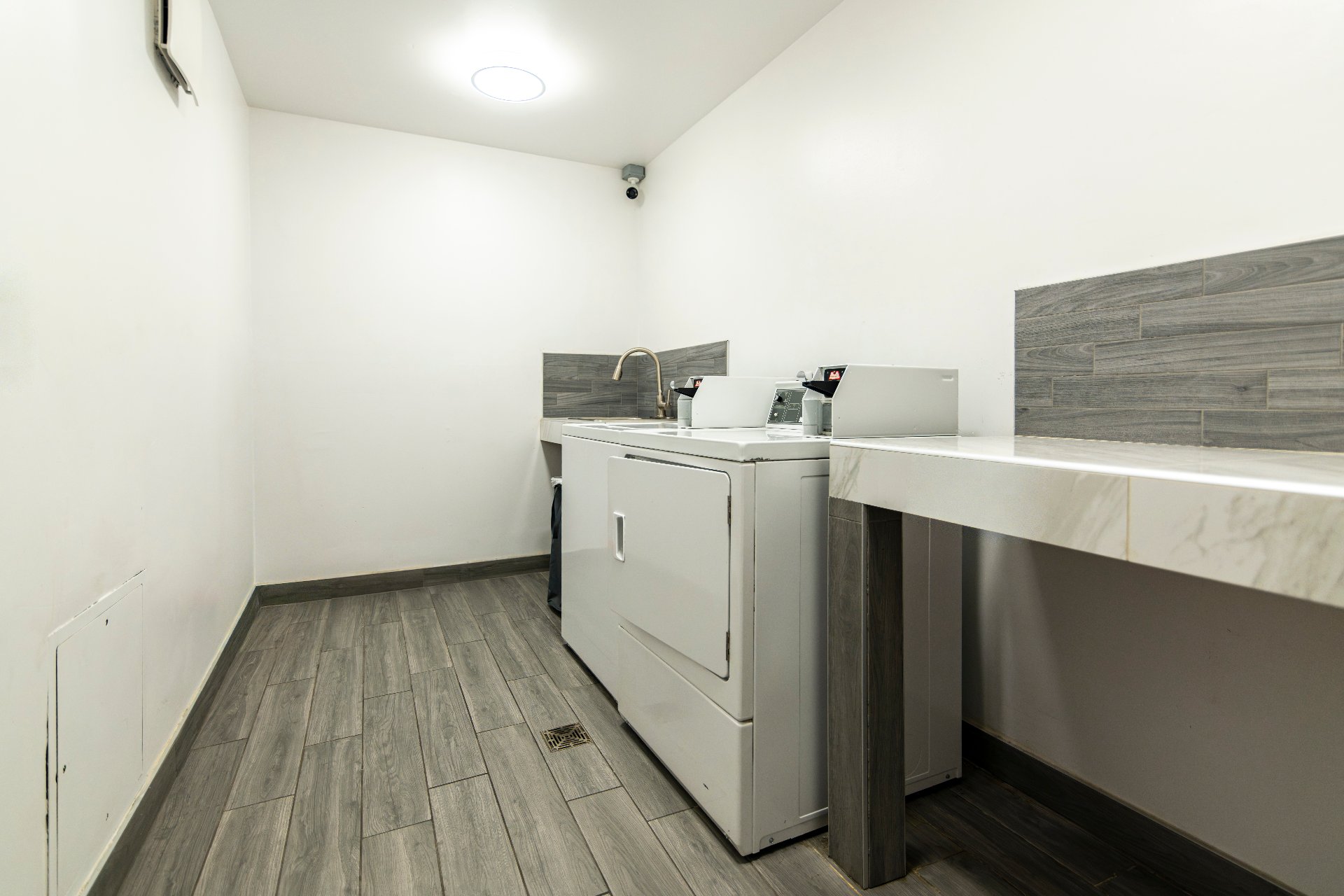 L'immeuble est muni d'un ascenseur, de caméras de surveillance ainsi que d'un service de concierge sur place, assurant confort et tranquillité d'esprit aux occupants. Une buanderie est également accessible au même étage, ce qui ajoute à la praticité du quotidien.