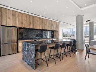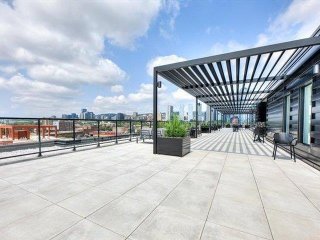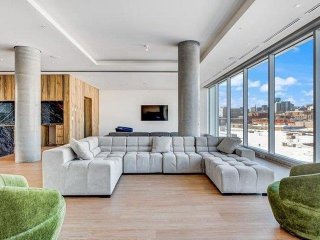 L'immeuble propose des commodités de qualité supérieure incluant une salle d'entraînement ultramoderne, une piscine, une terrasse sur le toit et un chalet urbain.