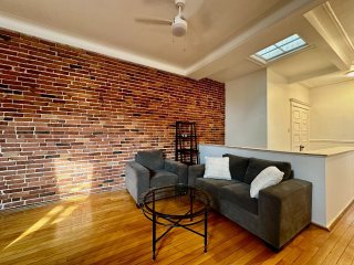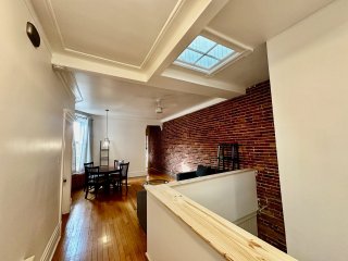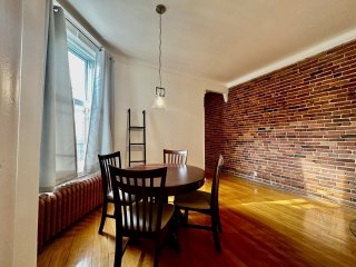- Intérieur : Murs de brique exposée et planchers de bois franc ajoutant du caractère et de la chaleur.